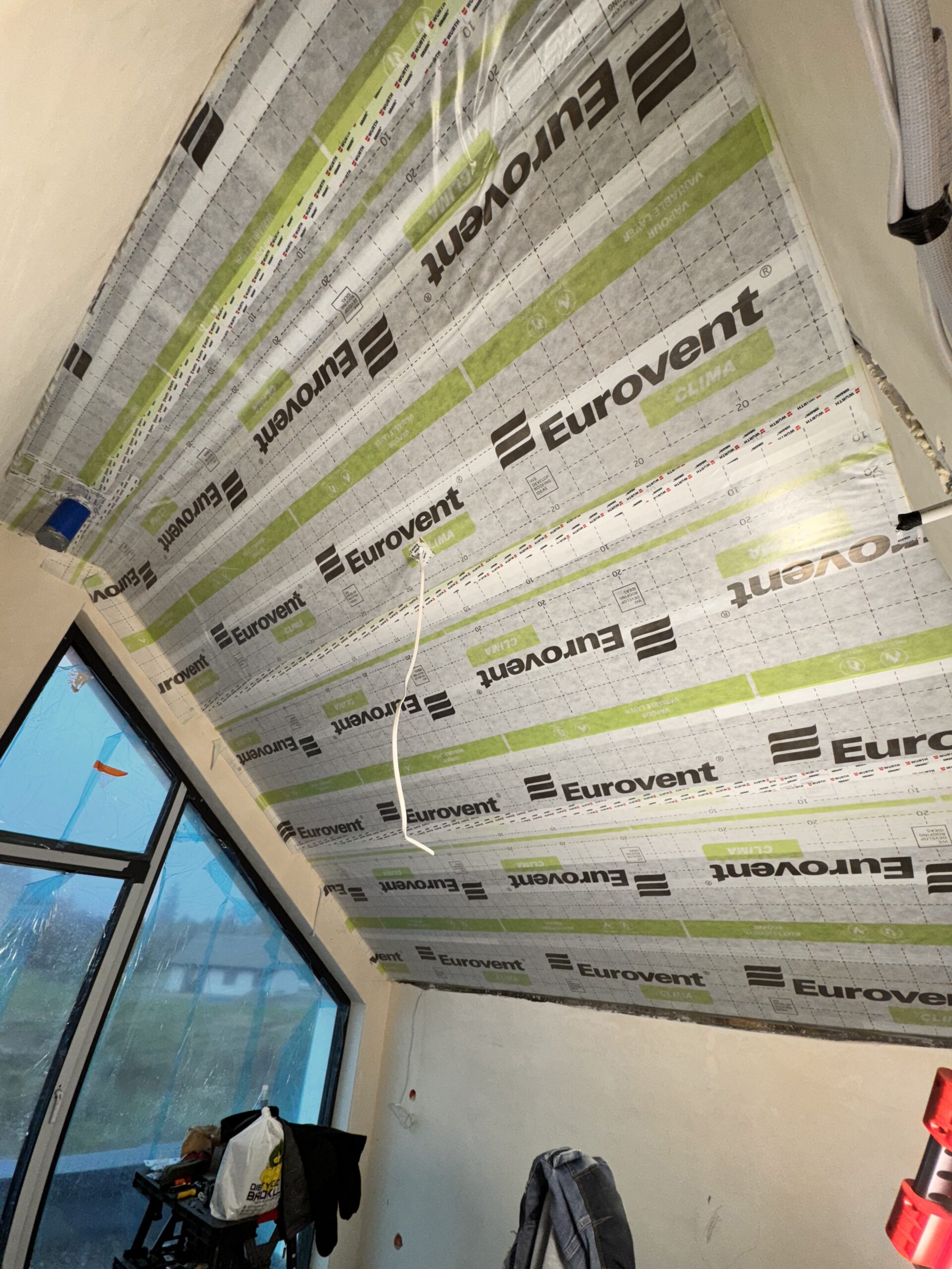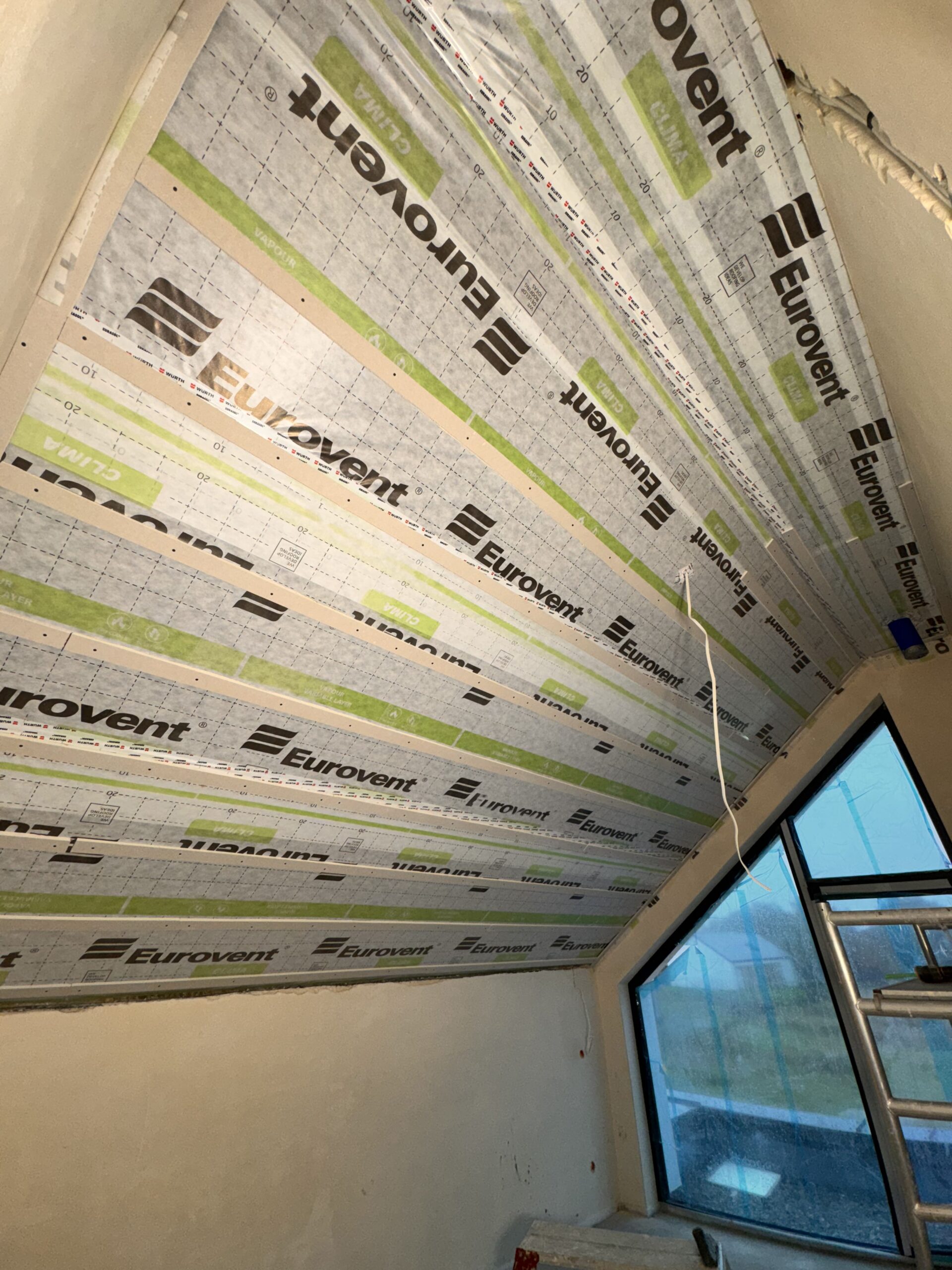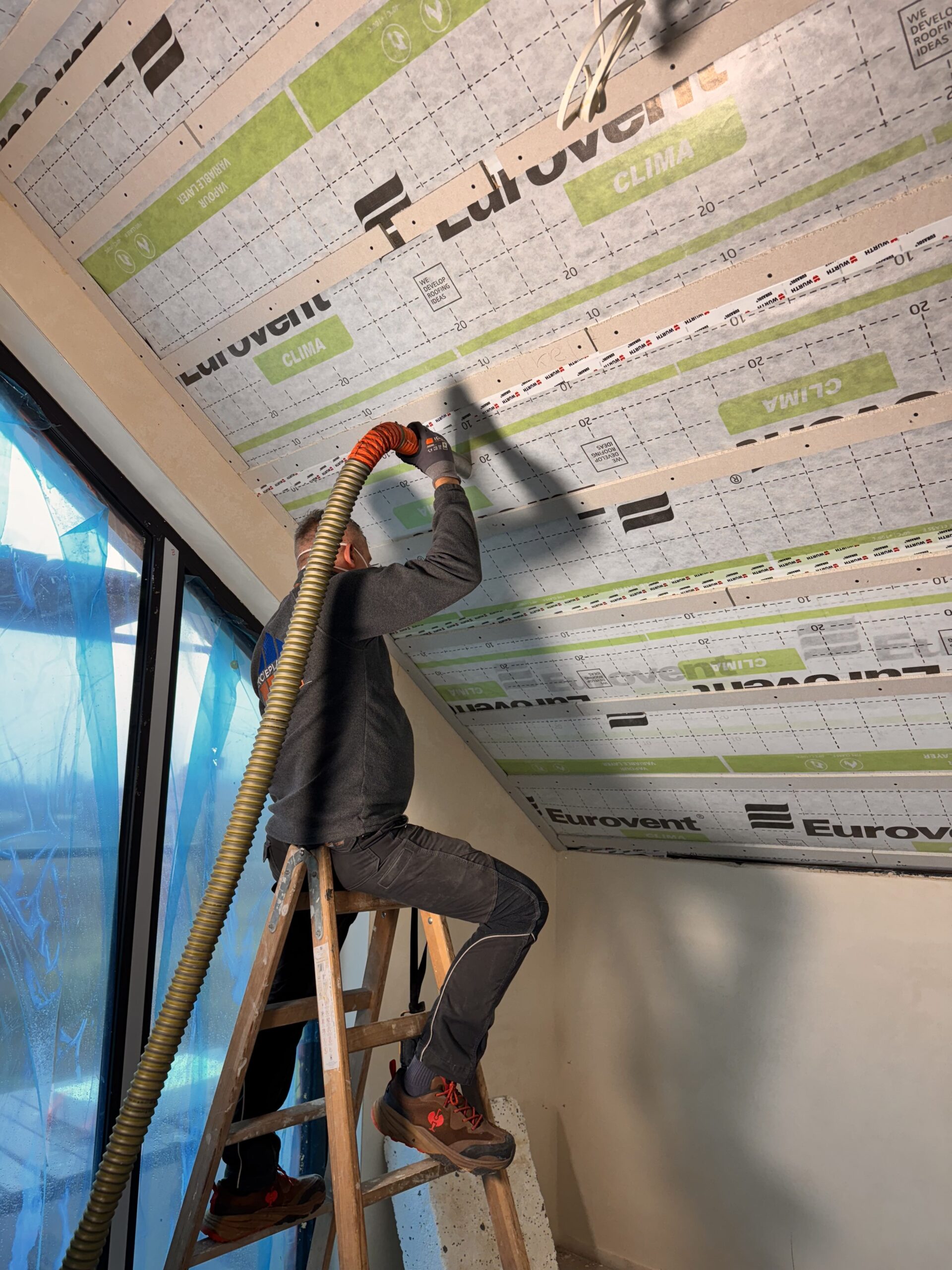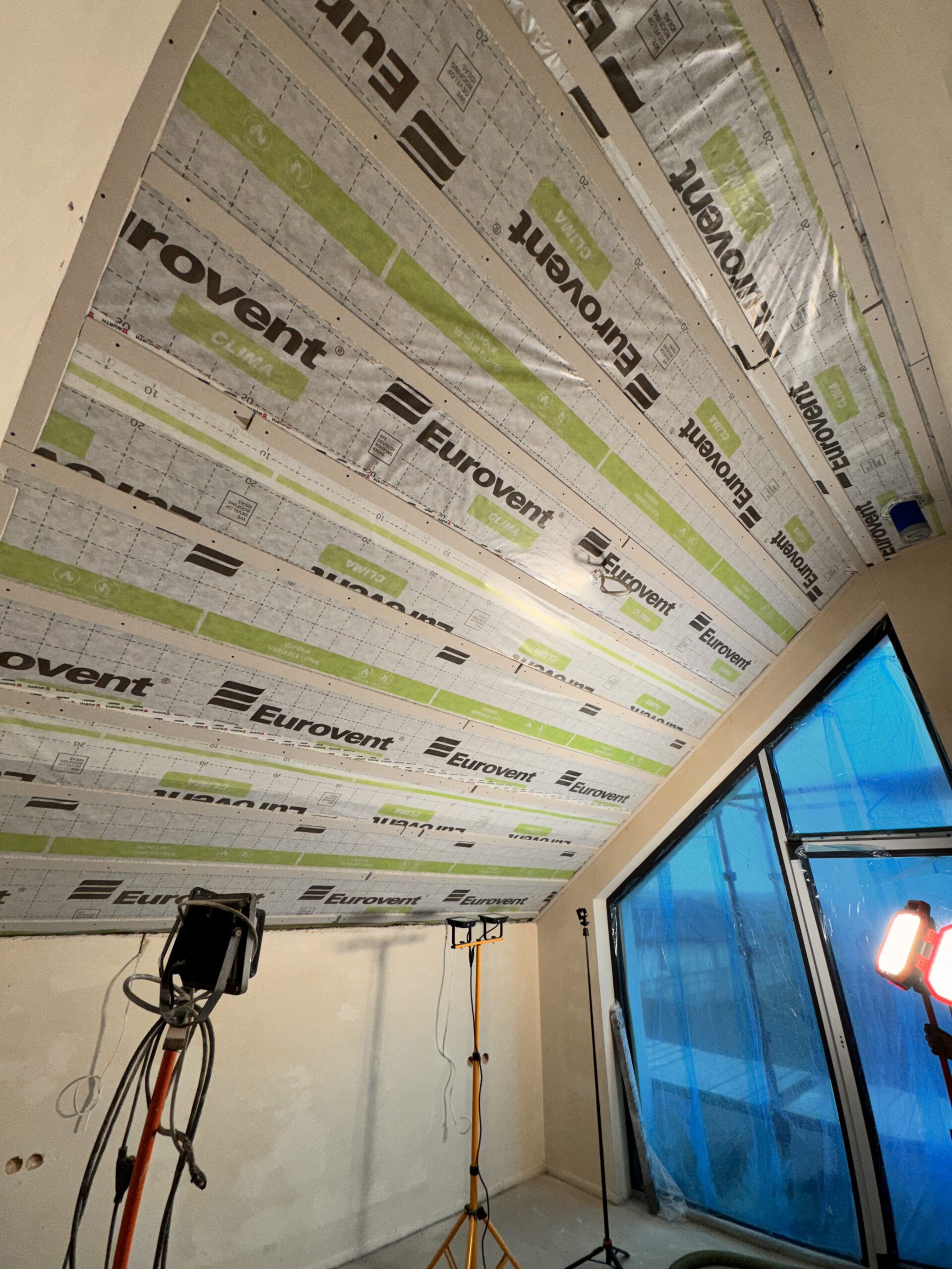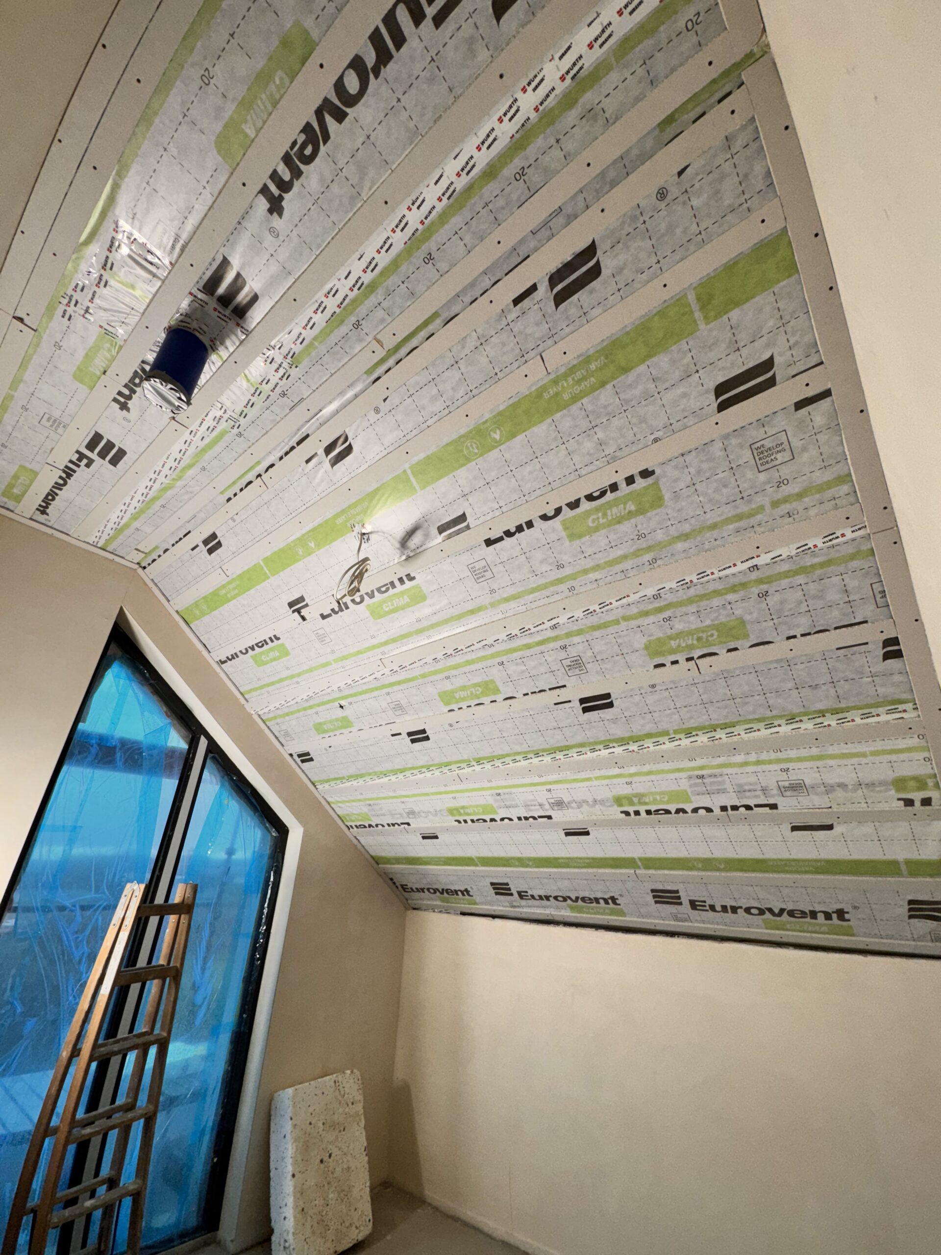Zabudowa poddasza dachu dwuspadowego kompleskowo z przygotowaniem pod tapety. Przygotowanie do zadmuchu izloacji w skosy i sufit.